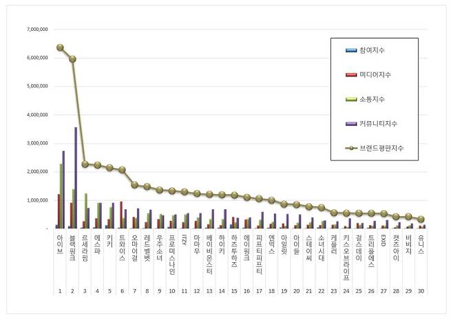 According to the Korea Corporate Reputation Research Institute, IVE ranked number 1 with a brand index of 6,372,506.