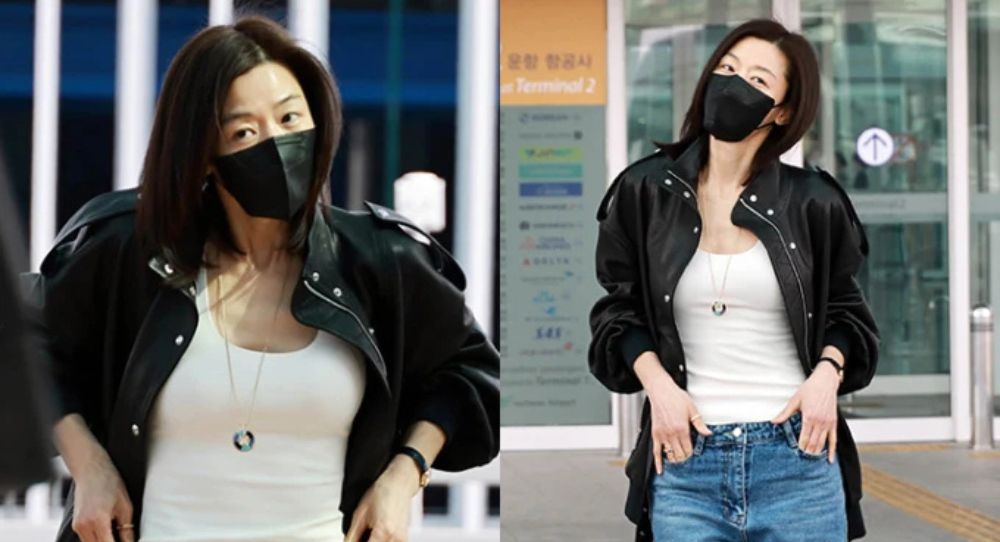 Actress Jun Ji Hyun gained attention for her stylish airport fashion while departing for an international watch event in Geneva, Switzerland.