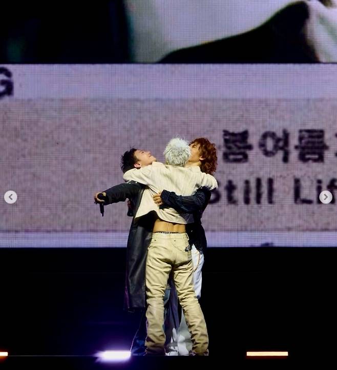 In the images, G-Dragon, Taeyang, and Daesung are seen hugging each other on stage, highlighting their strong bond and creating a warm and meaningful moment for fans.