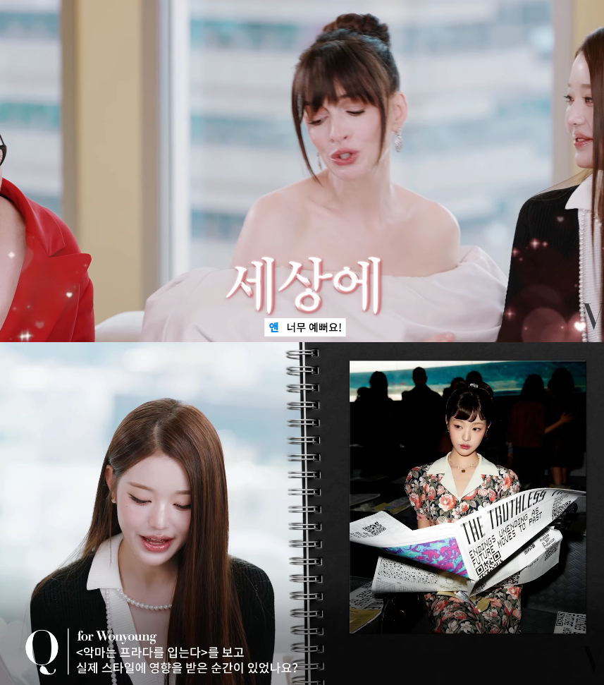 In a recent video released by Vogue Korea, Jang Wonyoung took on the role of interviewer for ‘The Devil Wears Prada 2’ stars Meryl Streep and Anne Hathaway.