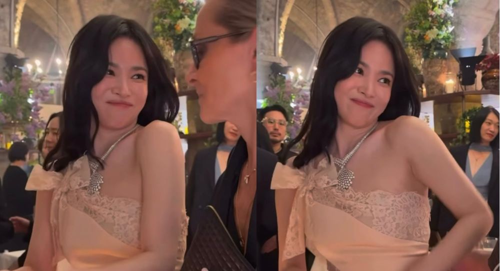 In the clip, Song Hye Kyo was seen interacting comfortably with people around her, even giving light cheek kisses to those beside her and showing a cute, playful side, which added to the relaxed mood of the moment.