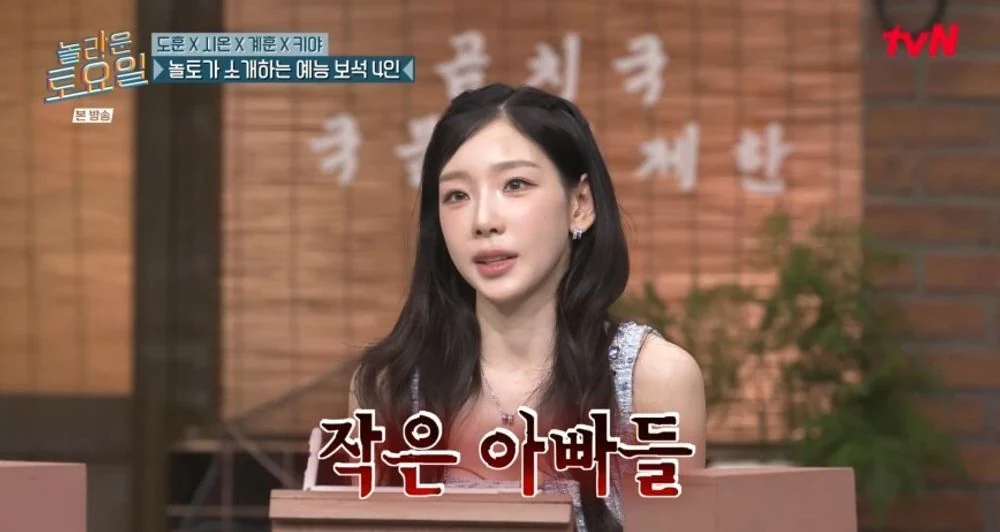 Hearing this, Taeyeon jokingly pointed at male cast members like Nucksal, Young K, and P.O and called them “little uncles,” making everyone laugh.