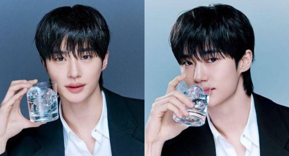 In the ad, Byeon Woo Seok appears in a black suit and white shirt, with slightly wet styled hair that gives him a clean and refreshing look.